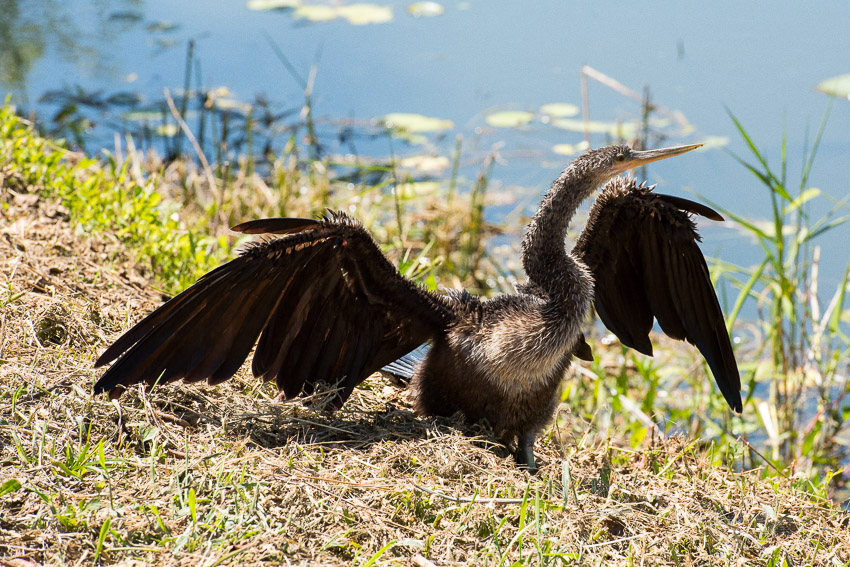 Alligatoren haben wir wirklich zahlreich an beiden Orten bestaunen können. Anhingas sind auch ein großartiger Anblick: Sie stürzen sich ins Wasser auf kleine Fische, schwimmen unter Wasser und klettern dann ans Ufer, um sich mit ausgebreiteten Flügeln in der Sonne trocknen zu lassen. Mit nassem Gefieder können sie nämlich nicht fliegen.