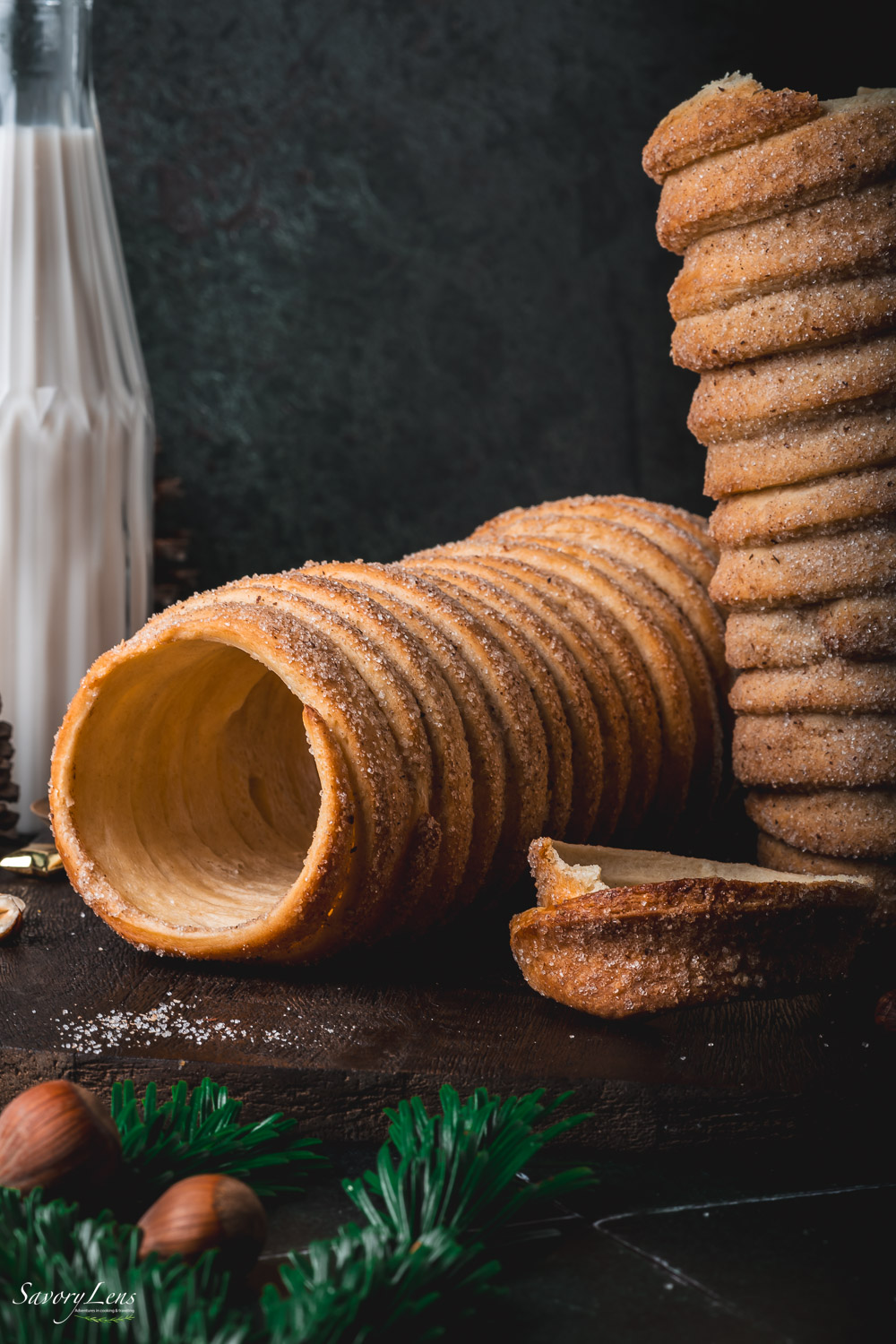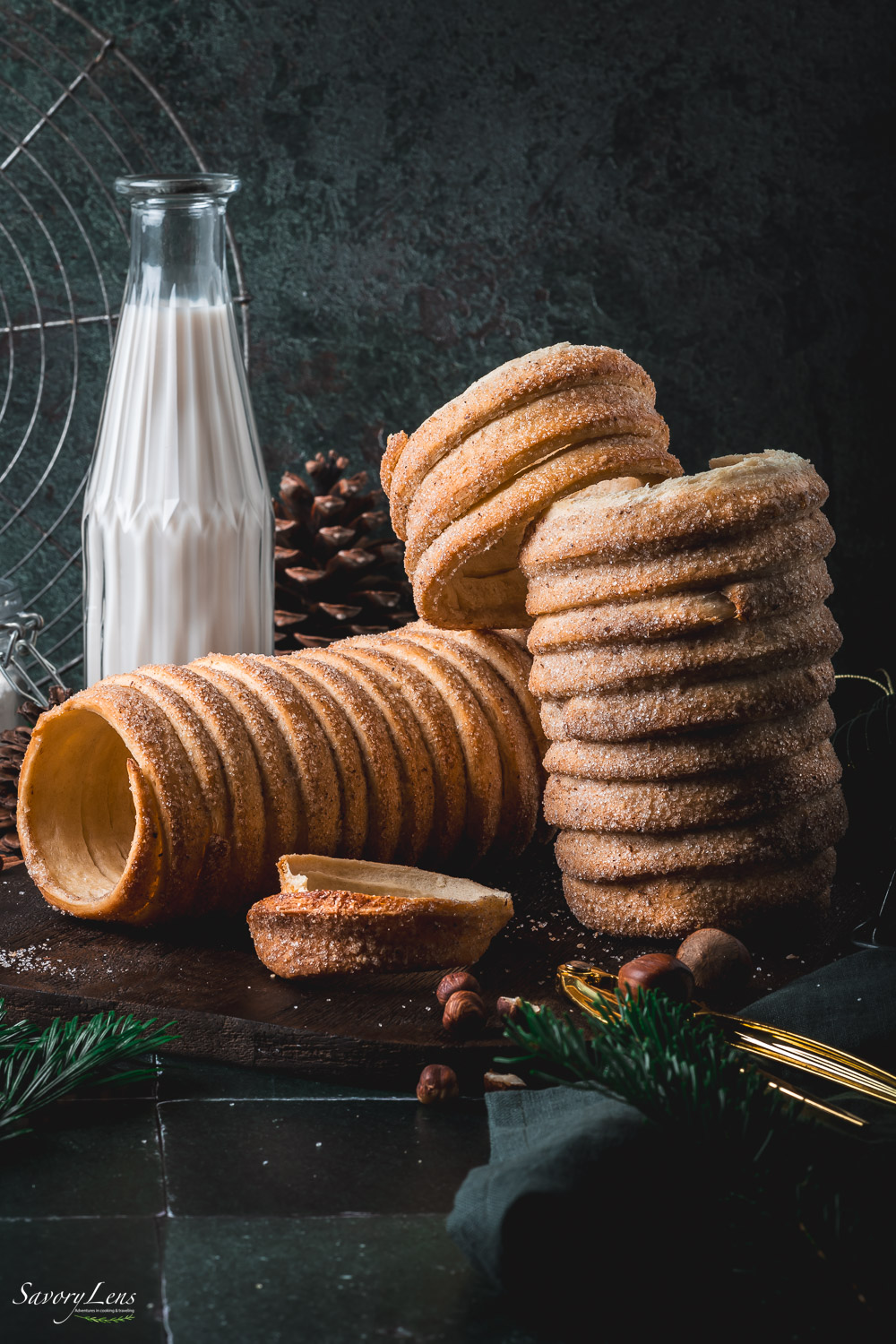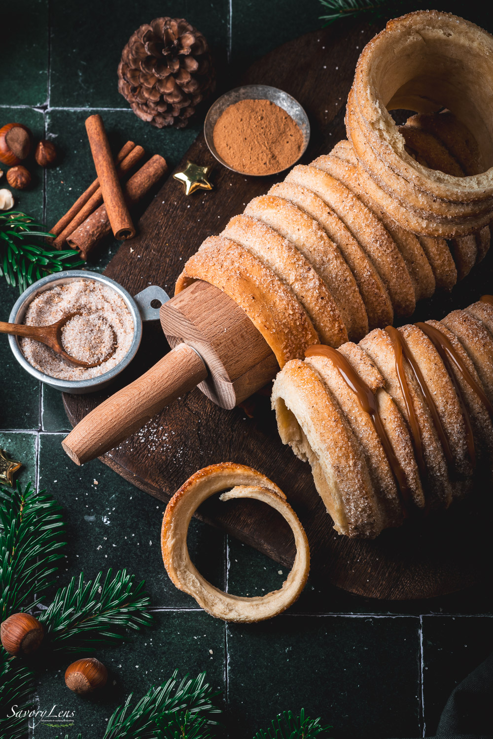 Kaum ein Gebäck versetzt uns beide so schnell in Weihnachtsstimmung wie ein frisch gebackener Baumstriezel. Dieses spiralförmig gewickelte Hefeteiggebäck – auf dem Weihnachtsmarkt meist mit Zucker-Zimt-Kruste serviert – duftet nach Zucker, Zimt und Nüssen und weckt sofort Erinnerungen an den Weihnachtsmarkt in Prag. Obgleich der Ursprung nicht so wirklich in Tschechien liegt, habe ich diese Leckerei dort erstmals vor einigen Jahren gegessen. Baumstriezel sind nicht nur ein Highlight in der Adventszeit, sondern haben eine lange Tradition in Mittel- und Osteuropa. Seit geraumer Zeit werden sie auch auf hiesigen Weihnachtsmärkten angeboten.