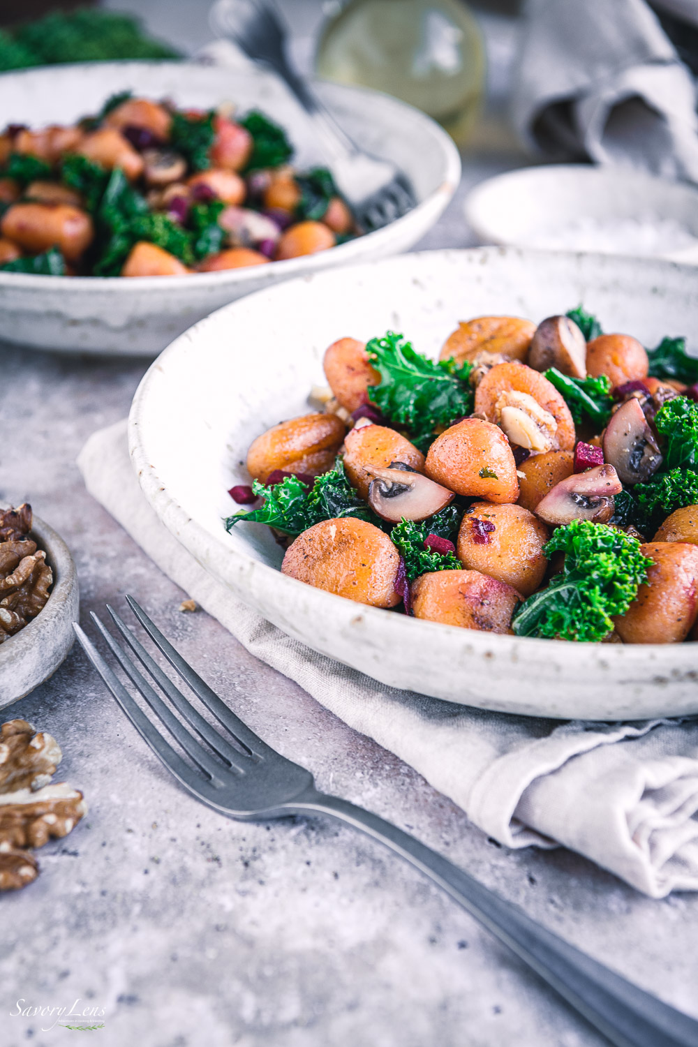 Süßkartoffel-Gnocchi mit Grünkohl und Champignons – Wohlfühlküche für kalte Tage