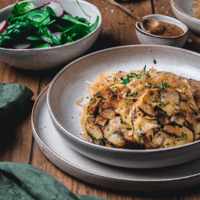 Brezen-Weißwurstknödel auf Sauerkraut mit cremiger Senfsauce – ein bayerisches Wohlfühlgericht, herzhaft, raffiniert und perfekt für gemütliche Runden.